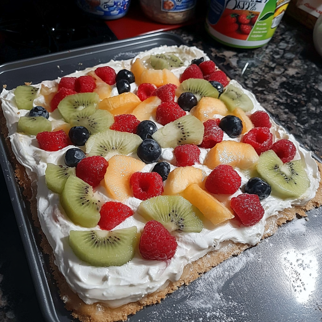 La Pizza de l’Été aux Fruits Frais n’est pas qu’une simple tarte aux fruits. Elle incarne l’idée d’un dessert convivial, lumineux et adaptable selon les saisons. La combinaison d’un sablé sucré et friable , d’une crème au fromage onctueuse et d’une garniture fruitée crée un équilibre entre textures et saveurs, où chaque bouchée mêle le croustillant, le crémeux et le juteux.