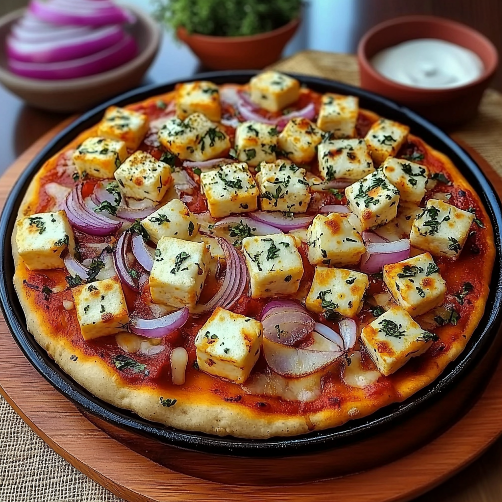 Les pizzas sont toujours un régal, mais il existe des façons originales de les revisiter. Si vous aimez les saveurs épicées et savoureuses, cette pizza indienne au paneer, accompagnée d’oignons rouges et d’épices douces, va ravir vos papilles. Le paneer (fromage indien) est l’ingrédient clé de cette recette, apportant une texture crémeuse et une richesse qui se marie parfaitement avec la tomate, le fromage, et les épices.