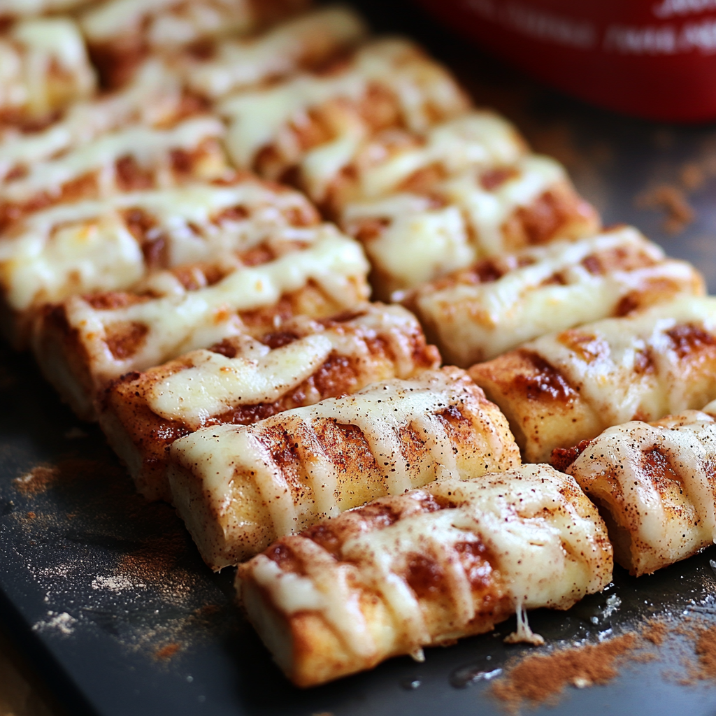 Les Pizza Sticks à la Cannelle sont le dessert parfait pour les amateurs de douceur. Avec leur préparation simple et rapide, leur croûte sucrée à la cannelle et leur glaçage crémeux, ils raviront à coup sûr petits et grands. Que vous les serviez pour un goûter, une fête ou un dessert après un bon repas, ces sticks apporteront une touche sucrée inoubliable à votre journée.