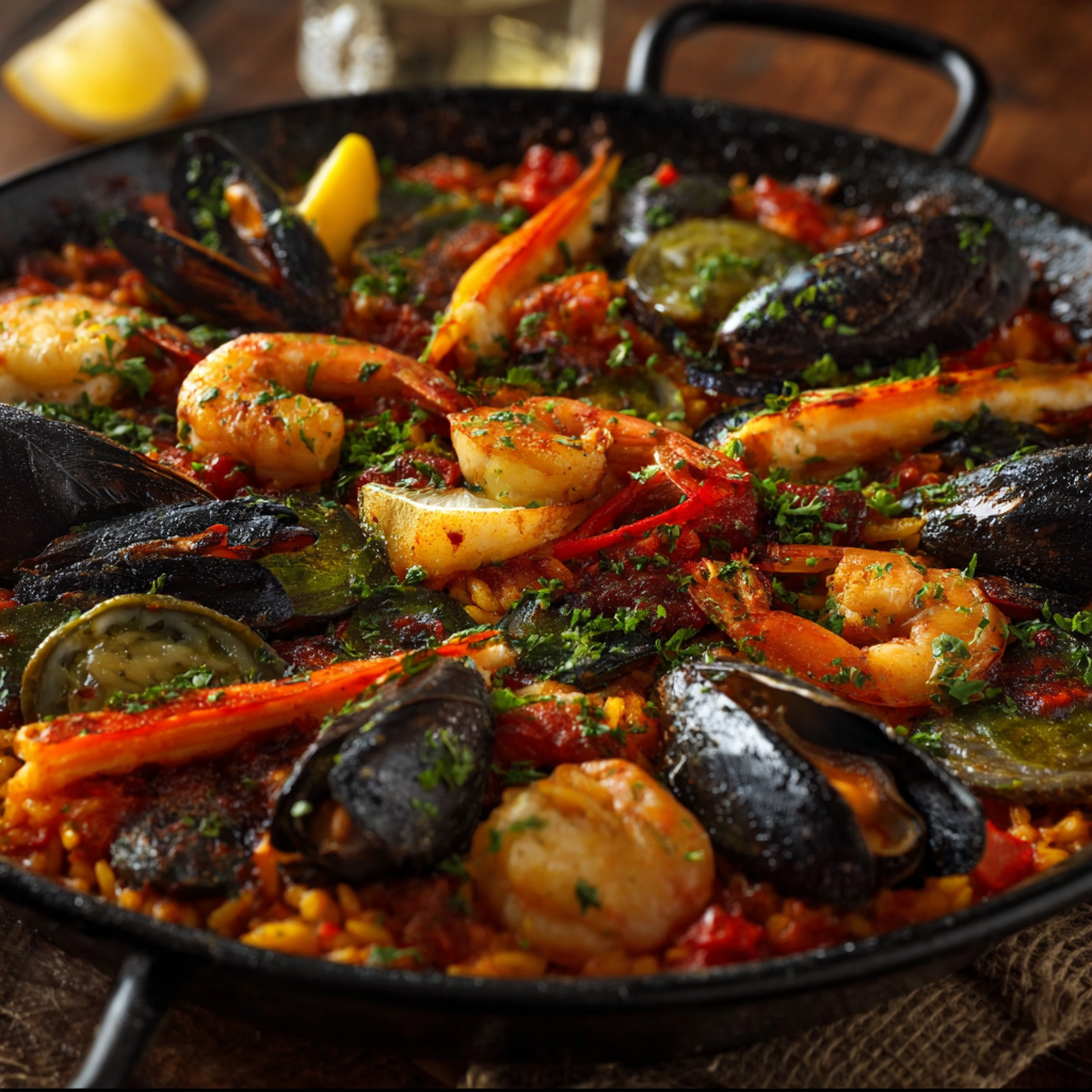 La version que nous proposons ici est pensée pour être rapide et accessible à tous, en conservant l’authenticité des arômes : poivrons colorés, tomates juteuses, épices chaleureuses et fruits de mer frais ou surgelés.