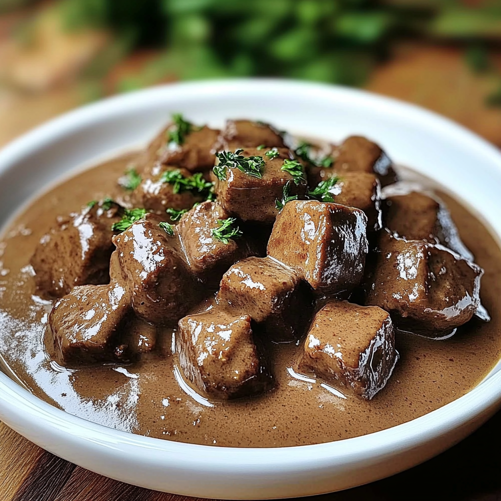Rien de tel qu’un bon plat mijoté pour réchauffer les cœurs et satisfaire les appétits. Ces pointes de bœuf tendres dans une sauce riche et crémeuse sont l’incarnation même du confort food : une viande fondante à souhait, nappée d’une sauce onctueuse, à servir avec des pommes de terre écrasées, des nouilles aux œufs ou du riz vapeur.