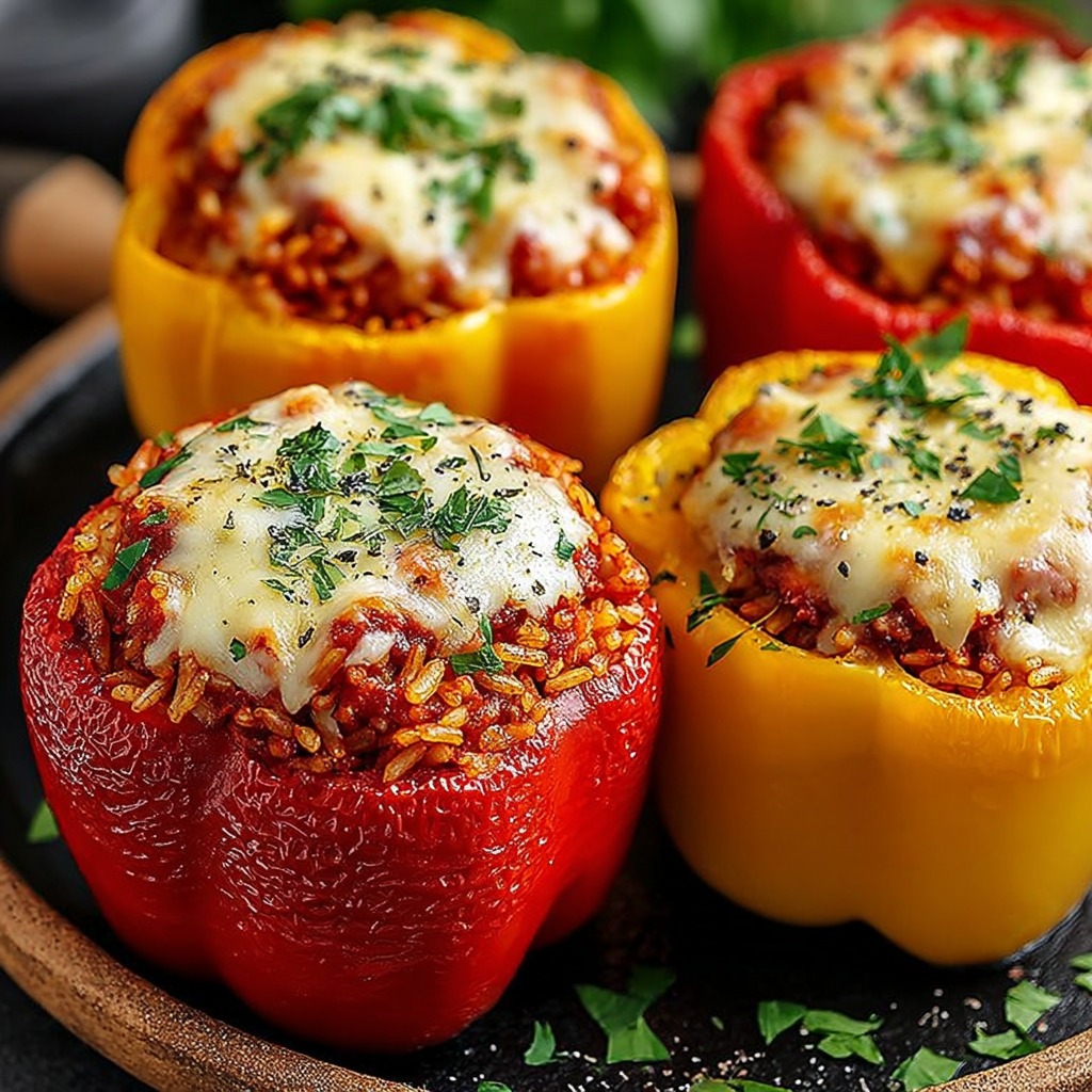 Les poivrons farcis sont une spécialité traditionnelle méditerranéenne, où légumes et riz sont souvent combinés pour créer un plat complet et nourrissant. L’ajout de fromage fondant et d’herbes aromatiques apporte une touche gourmande et parfumée, transformant ce plat simple en un véritable délice familial.