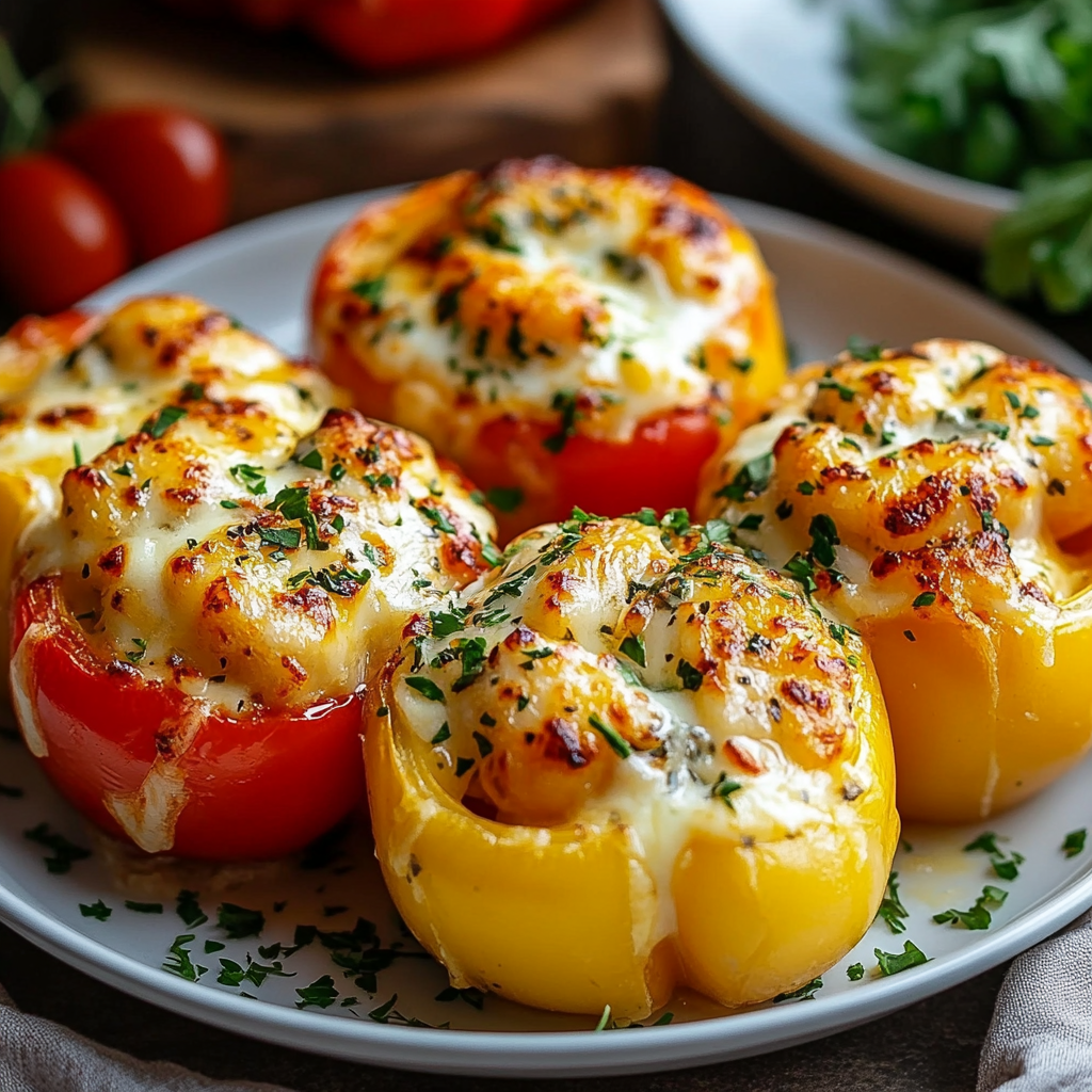Poivrons Farcis aux Crevettes Tendres, Fromage Crémeux et Herbes Aromatiques : Une Explosion de Saveurs Méditerranéennes