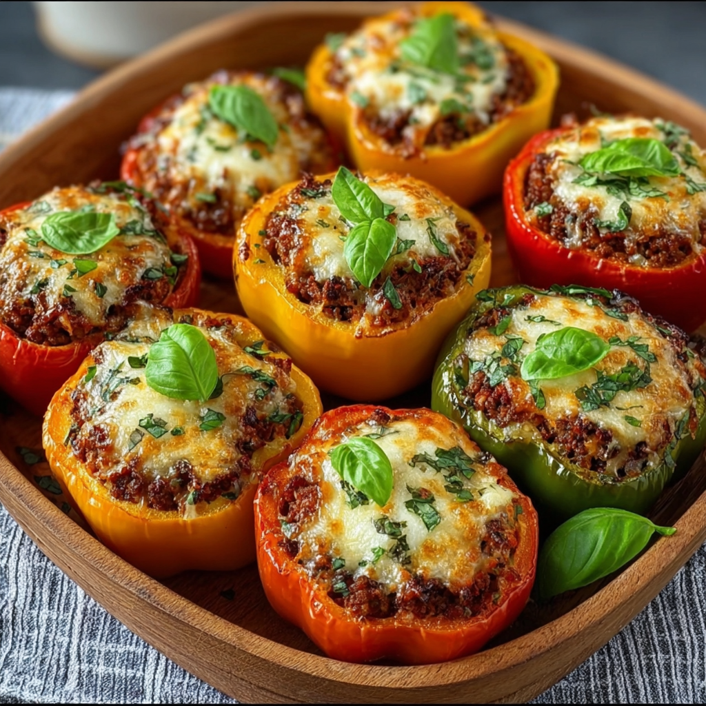Des poivrons colorés, généreusement garnis d’un bœuf parfumé puis gratinés sous une couche fondante et dorée. Ce plat familial est à la fois équilibré, savoureux et irrésistiblement réconfortant. Les poivrons apportent douceur et légère sucrosité, la farce au bœuf est riche et parfumée, et la mozzarella vient sublimer l’ensemble avec son fondant incomparable.
