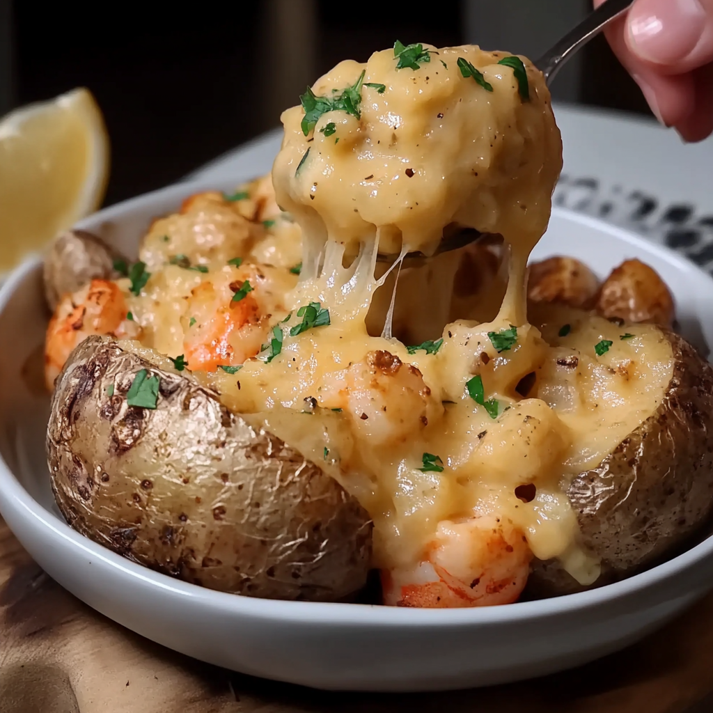 Cette recette associe la douceur et la texture fondante des pommes de terre rôties au four avec le goût raffiné des crevettes sautées à l’ail et au citron. On ajoute une touche d’herbes fraîches, un soupçon de paprika fumé, et un filet d’huile d’olive pour un résultat irrésistible. Parfait en plat principal, accompagné d’une salade verte ou de légumes grillés.