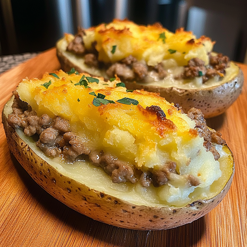 En moins de 1 h 30 , offrez à votre famille ou à vos invités un plat réconfortant, ultra-gourmand et facile à réussir. Gourmandise, chaleur et simplicité : ces pommes de terre farcies façon Shepherd’s Pie rappellent qu’un plat rustique peut se sublimer avec quelques gestes bien placés.