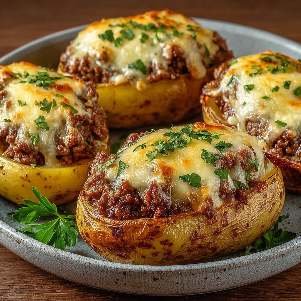 Pommes de terre farcies à la viande hachée gratinée au fromage