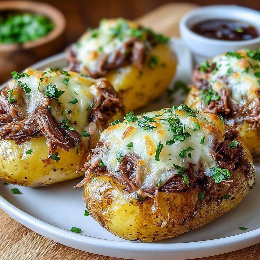 En résumé, les pommes de terre farcies au bœuf effiloché barbecue constituent un plat facile à réaliser, qui combine la douceur des pommes de terre cuites au four, la saveur fumée de la sauce barbecue et le croustillant du fromage gratiné. Ce plat complet et gourmand est parfait pour un dîner familial ou entre amis. Avec quelques astuces simples, il est possible de l’adapter à différents goûts et de gagner du temps tout en conservant un résultat délicieux.