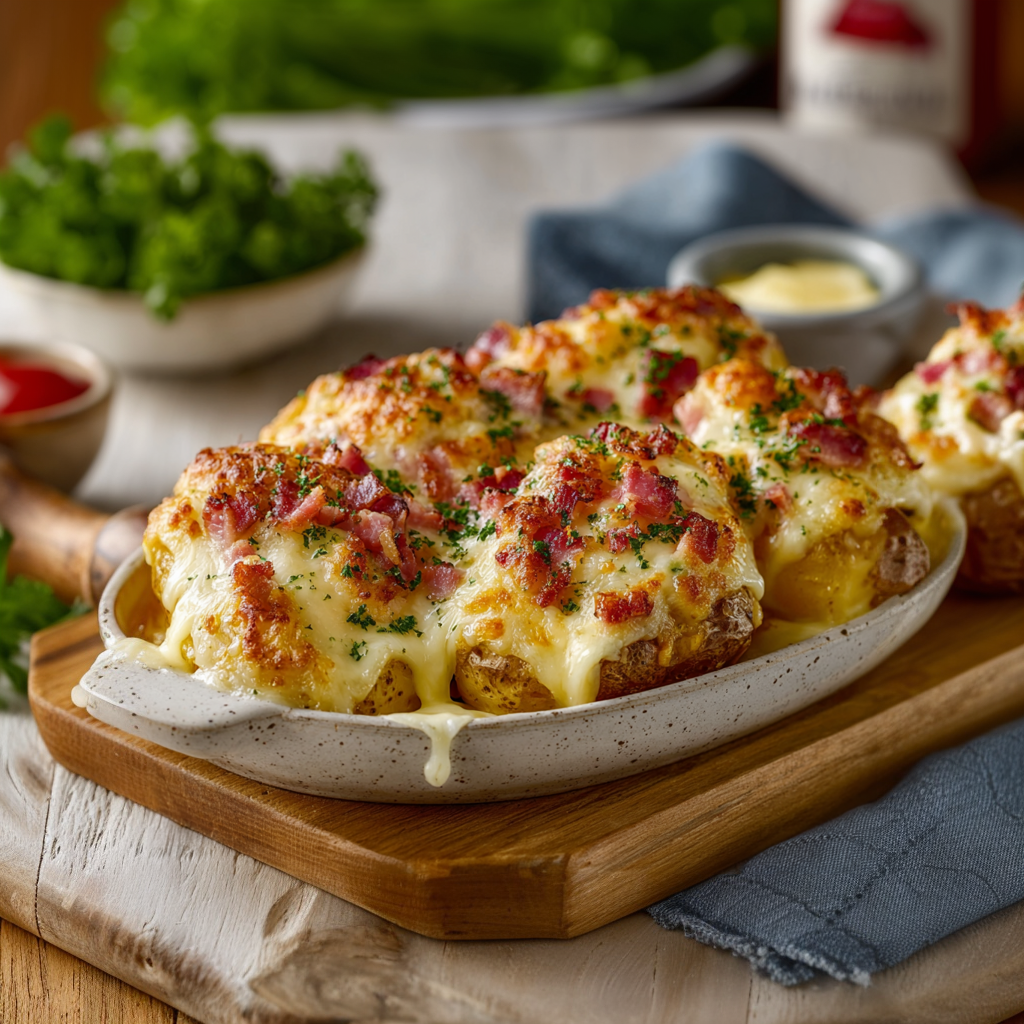 Les pommes de terre farcies au jambon et fromage à raclette sont bien plus qu’un simple plat. C’est une expérience gourmande complète : moelleuse, fondante, chaleureuse.