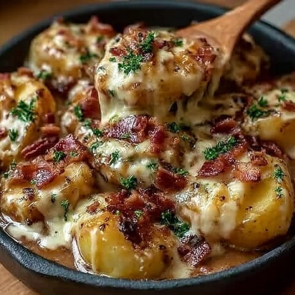 Les pommes de terre festonnées crémeuses au fromage et au bacon sont bien plus qu’un simple gratin. C’est un plat généreux, convivial et profondément satisfaisant.