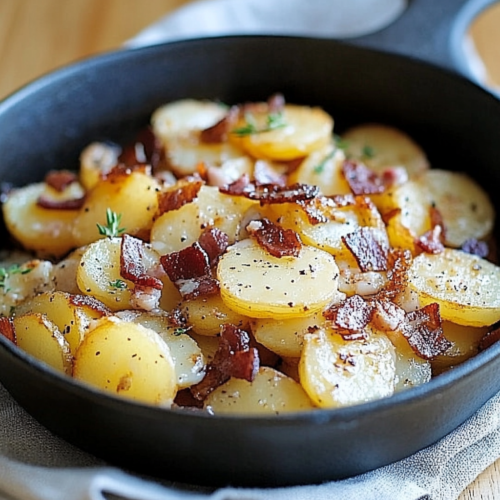 Les pommes de terre poêlées au lard croustillant sont l’une des recettes les plus réconfortantes que vous puissiez préparer. Ce plat combine la douceur des pommes de terre à la texture croquante du lard, le tout assaisonné d’oignons caramélisés et de thym frais pour un parfum irrésistible. Que ce soit pour un dîner en famille ou un repas entre amis, ce plat saura ravir vos papilles. Nous allons vous guider pas à pas pour réaliser cette recette simple et délicieuse. À la fin de cet article, vous disposerez de toutes les astuces pour personnaliser cette recette, l’adapter à vos goûts et obtenir un résultat parfait.