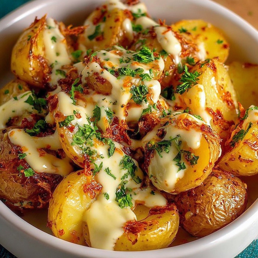 Les pommes de terre rôties à l’ail et au fromage sont un accompagnement gourmand et réconfortant, parfait pour compléter un plat de viande, de volaille ou de poisson. La cuisson au four permet aux pommes de terre de devenir croustillantes à l’extérieur tout en restant fondantes à l’intérieur. L’ail apporte une note parfumée et chaleureuse, tandis que le fromage fondu crée une texture onctueuse et savoureuse qui transforme ce plat simple en un véritable régal.