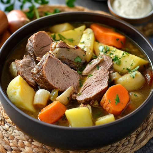 Le Pot-au-Feu Traditionnel à l’Ancienne est un plat réconfortant par excellence. Sa cuisson lente et ses ingrédients simples en font un mets nourrissant et savoureux qui ravira vos convives. Parfait pour les grandes occasions ou les repas familiaux, il incarne l’âme de la cuisine française traditionnelle.