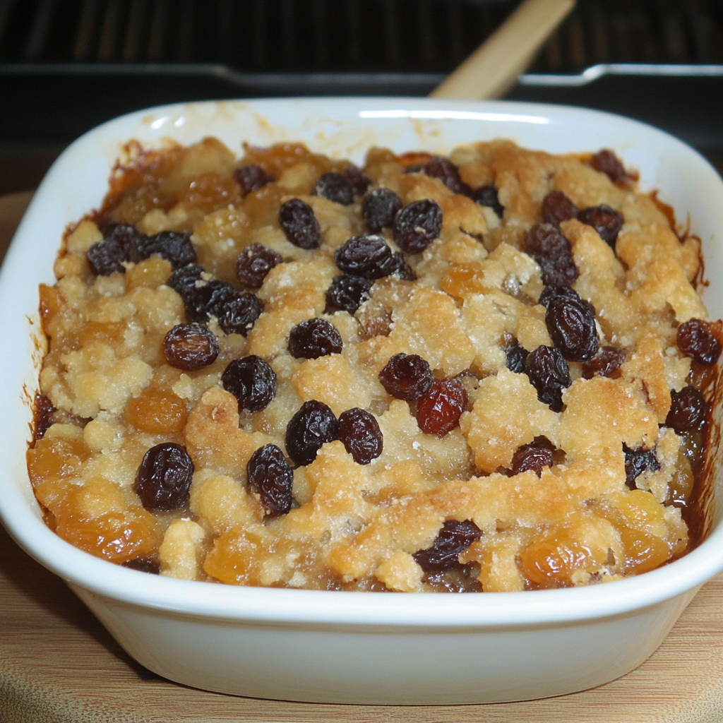 Savourez ce pouding aux raisins moelleux, réconfortant et plein de douceur, parfait dessert familial exquis.