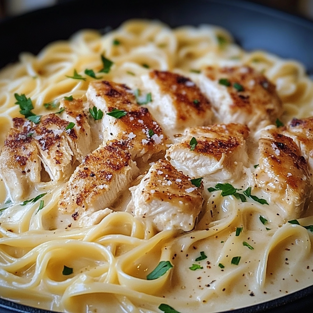 5. Service : Servez le Poulet Alfredo avec un pain à l’ail croustillant ou une salade fraîche pour un repas complet.