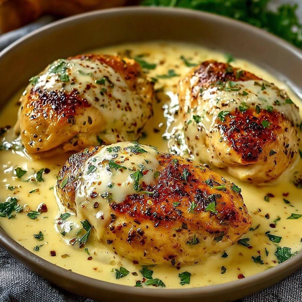 Le poulet au fromage à la crème dans une sauce crémeuse aux herbes est un plat qui conjugue douceur et richesse aromatique. Il met en valeur la tendreté du poulet et l’onctuosité d’une sauce savoureuse, relevée par la fraîcheur des herbes et la subtilité du citron. Facile à préparer, personnalisable et irrésistiblement réconfortant, il illustre parfaitement l’art de la cuisine maison qui allie simplicité et plaisir.