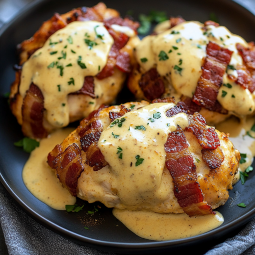 Poulet au Fromage et Bacon avec Sauce Moutarde