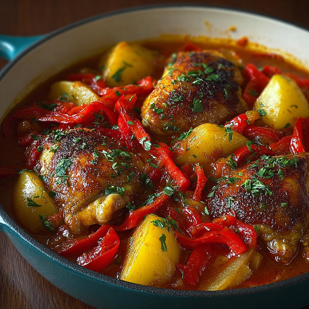 Poulet aux Poivrons et Pommes de Terre Fondantes en Sauce Tomate