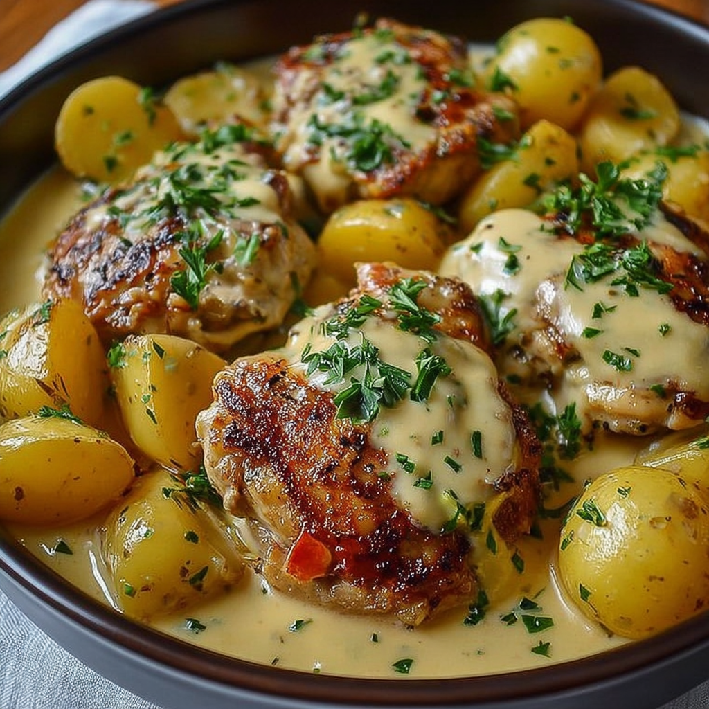 Le Poulet aux pommes de terre à la sauce au fromage est le plat familial par excellence. Il réunit tout ce qu’on aime :