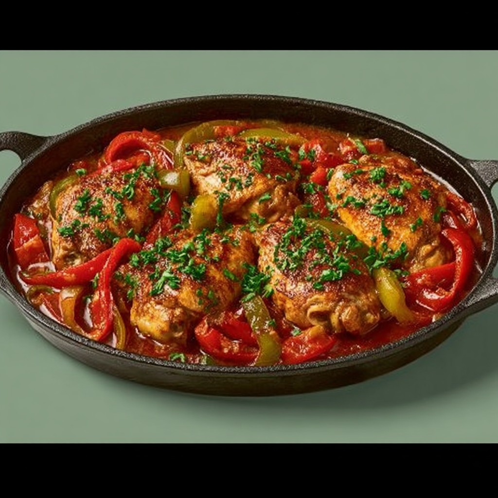 Cette recette repose sur l’association parfaite entre de tendres morceaux de poulet mijotés doucement et la célèbre piperade basquaise, une préparation parfumée à base de tomates, poivrons, oignons, ail et piment. Le tout forme une sauce riche, fondante et pleine de caractère qui enrobe la volaille avec une intensité délicieuse.