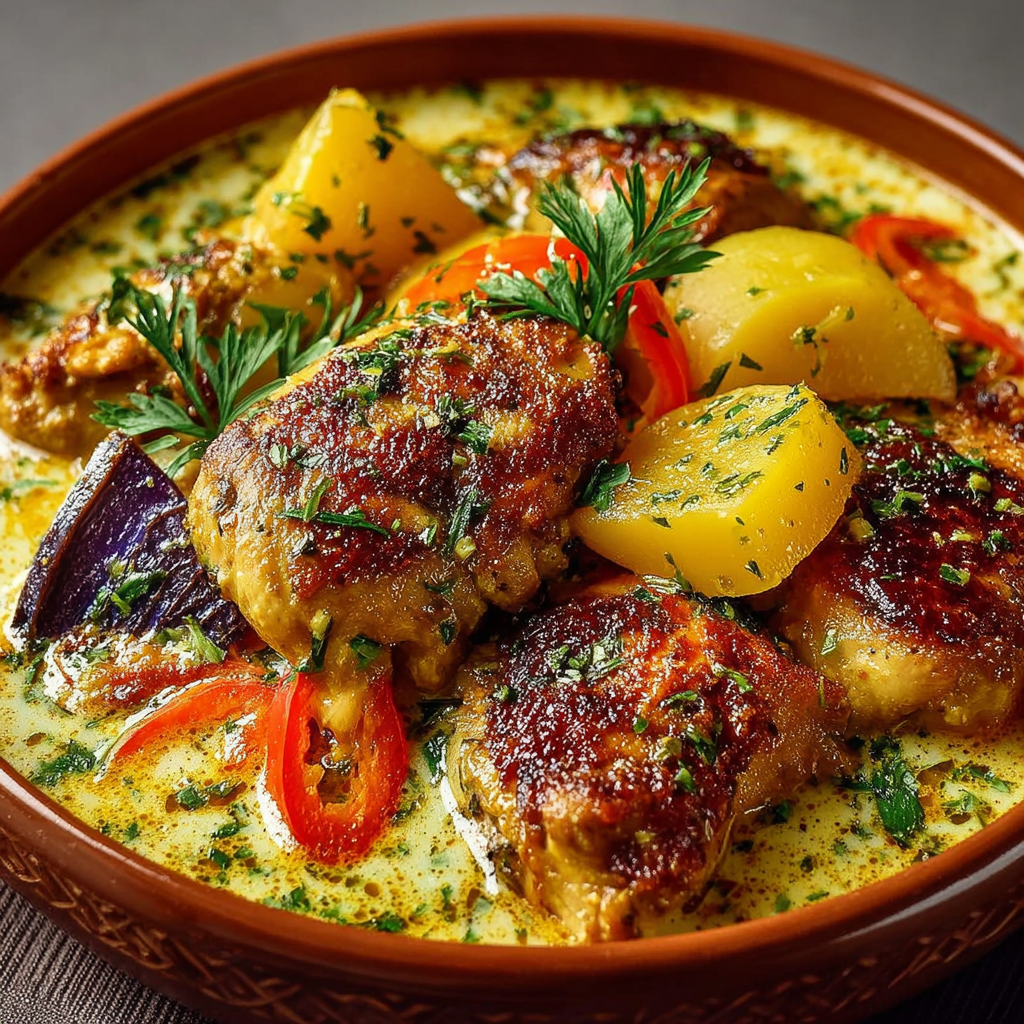 Cette recette plaît énormément car elle est à la fois simple à préparer et spectaculaire en saveurs. Le poulet mijote doucement avec les pommes de terre et les carottes, ce qui permet aux arômes de bien se diffuser dans toute la sauce. Le résultat est un plat complet, convivial et parfait pour les repas en famille.