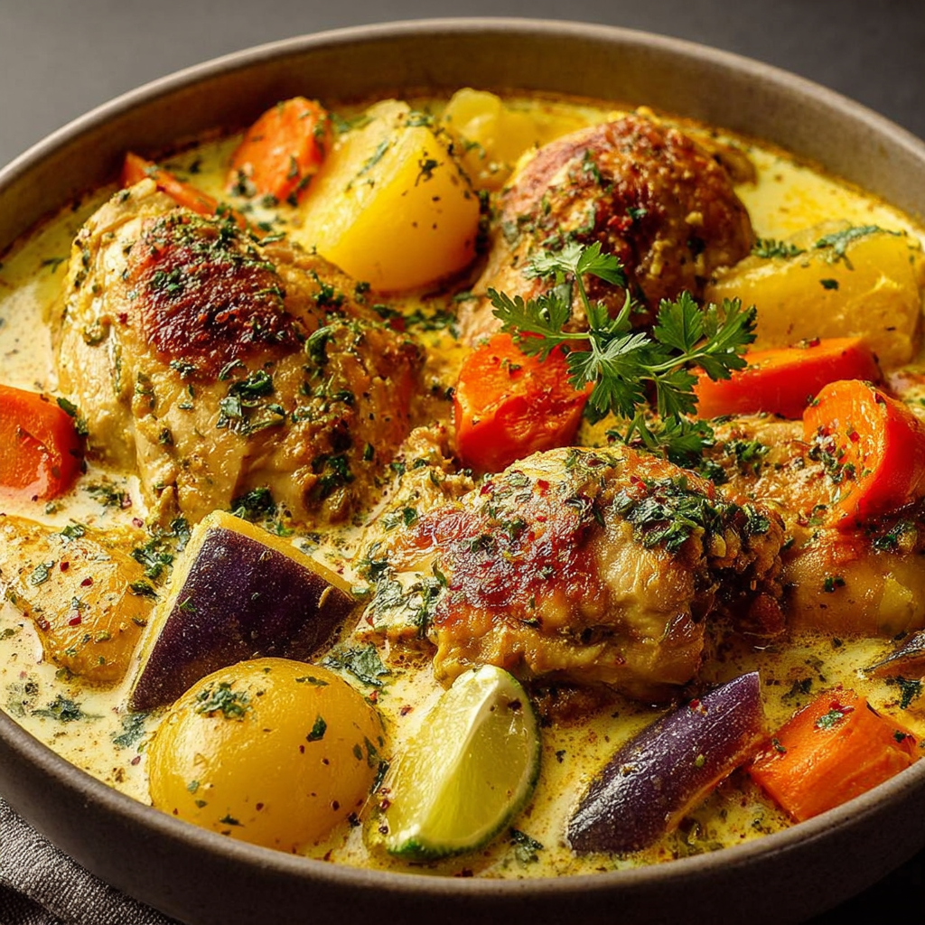 Le poulet colombo au lait de coco est un plat emblématique inspiré de la cuisine antillaise, où les épices chaudes rencontrent la douceur du lait de coco. Savoureux, parfumé et généreux, ce plat séduit par ses arômes complexes et sa texture fondante.