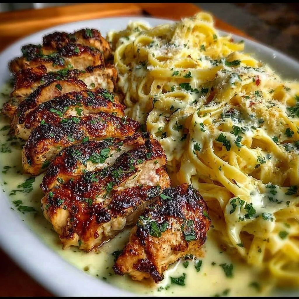 Le poulet crémeux au beurre d’ail accompagné de linguine nappées de sauce Alfredo est un plat riche, savoureux et profondément réconfortant. Inspiré de la tradition italo-américaine, il combine la tendreté du poulet doré, l’intensité aromatique de l’ail, la douceur du beurre et l’onctuosité d’une sauce Alfredo parfaitement liée.