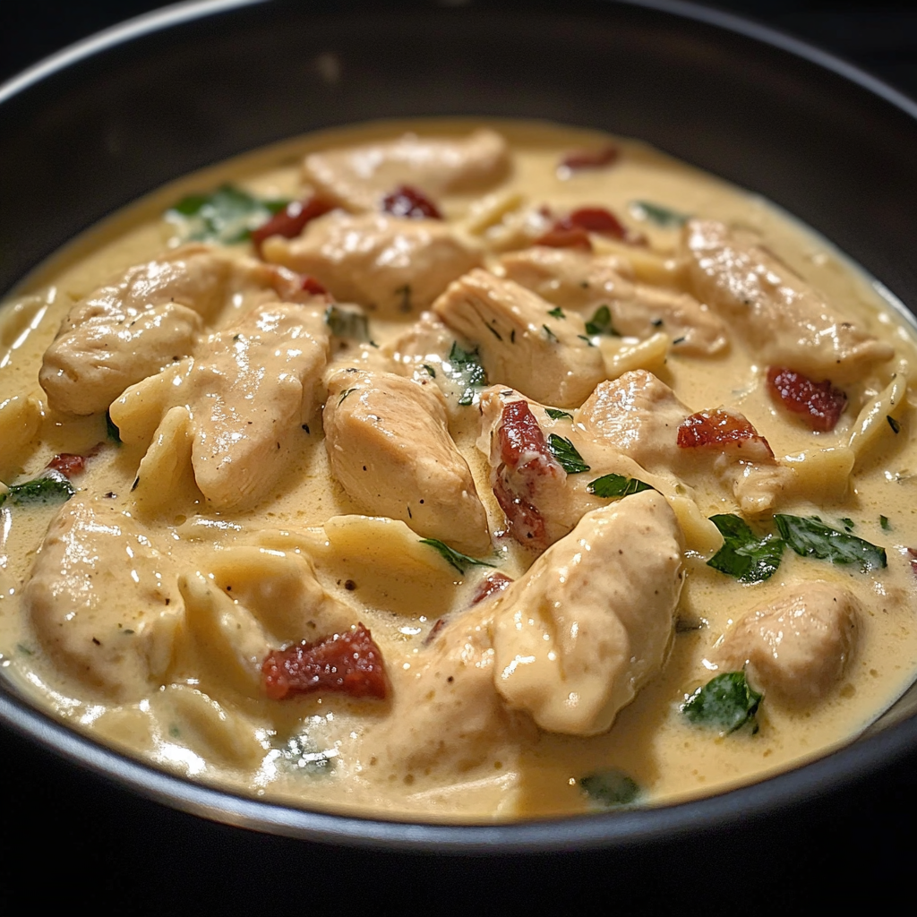 La cuisine italienne regorge de recettes de pâtes à la crème : carbonara, Alfredo, panna e prosciutto… Le « Poulet crémeux aux épinards et tomates séchées » en est une variation gourmande, où l’on capitalise sur :