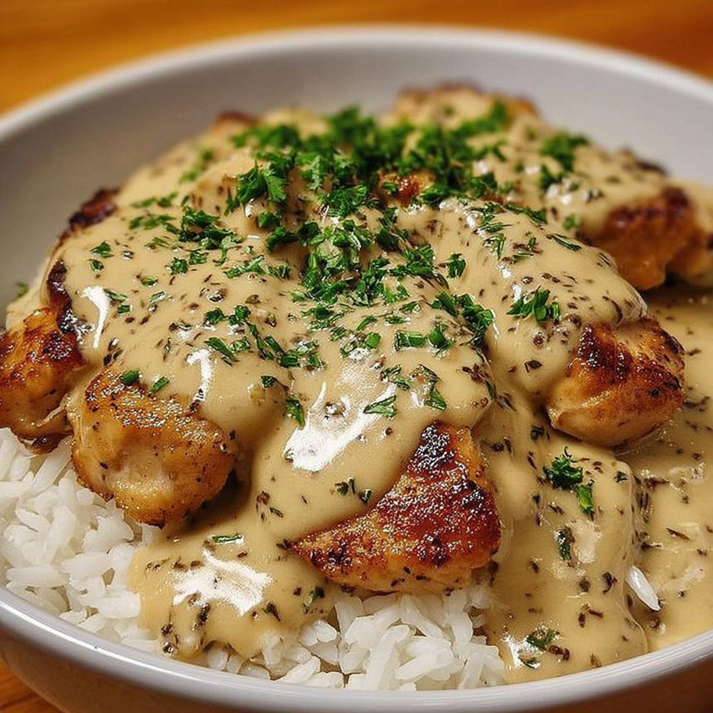 Le poulet crémeux et riz couverts de sauce est un plat généreux, crémeux et réconfortant, parfait pour toutes les occasions. Sa simplicité de préparation, son goût irrésistible et sa capacité à régaler petits et grands en font une valeur sûre dans votre carnet de recettes.