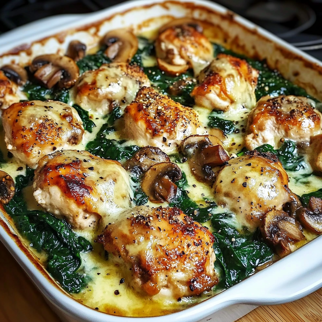 Le Poulet, Épinards et Champignons au Four, Faible en Glucides est une recette simple, rapide et pleine de saveurs, parfaite pour ceux qui souhaitent manger plus sainement sans renoncer au plaisir. Que ce soit pour un dîner en semaine ou un repas en famille, ce plat offre une combinaison parfaite de protéines maigres, de légumes et de fromage fondant, tout en étant faible en glucides. Ajoutez-y des légumes de saison ou des épices pour personnaliser la recette selon vos goûts et laissez-vous séduire par cette délicieuse option de repas faible en glucides.