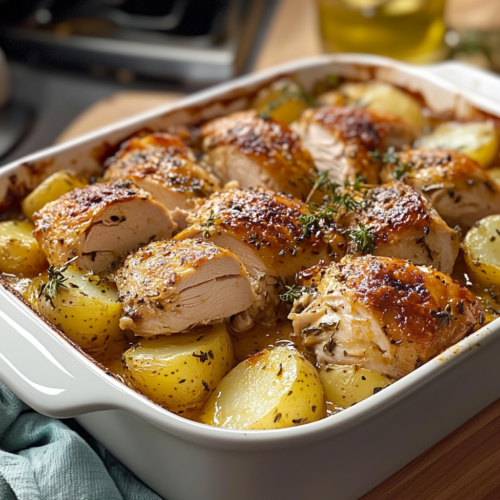 Le poulet et pommes de terre au four est un classique incontournable pour toutes les occasions. Simple, savoureux et polyvalent, ce plat rassemble tout ce que l’on aime dans la cuisine maison. Essayez-le dès aujourd’hui, et faites-en une tradition dans vos repas de famille !