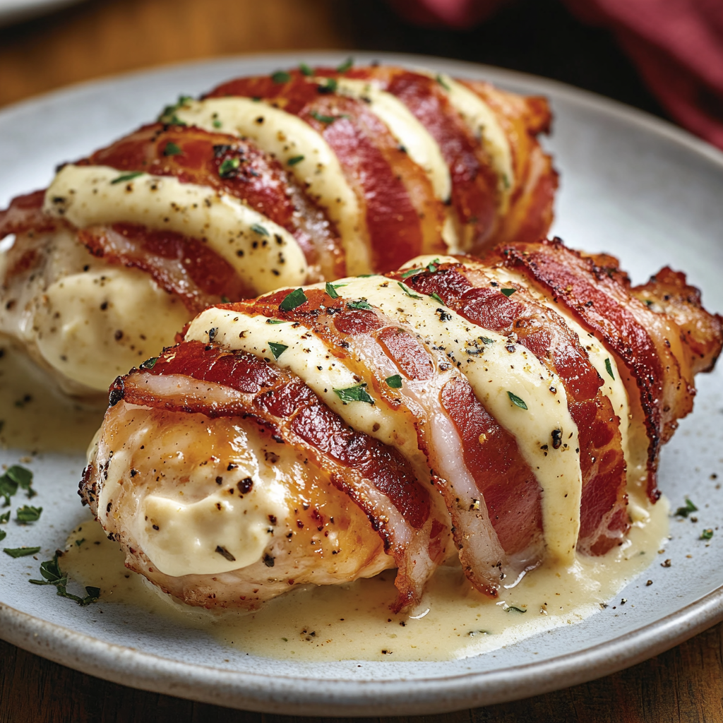 Poulet Farci au Fromage à la Crème Enveloppé de Bacon