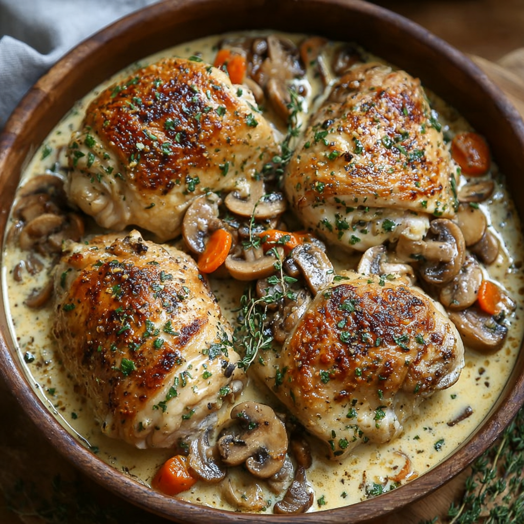 Le poulet farci est un plat classique, mais lorsqu’il est généreusement garni de champignons sautés, de fromage fondant et sublimé par un beurre à l’ail parfumé, il devient tout simplement irrésistible. Ce plat à la fois crémeux, savoureux et élégant est parfait pour un dîner raffiné, un repas en famille ou un dîner romantique à la maison.