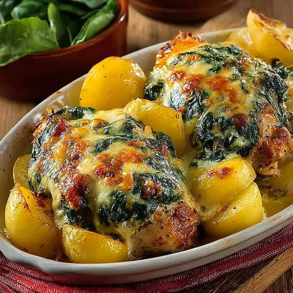 Le poulet gratiné aux épinards et pommes de terre fondantes est un plat complet, généreux et réconfortant. Il combine saveur, nutrition et simplicité. C’est une recette parfaite pour les familles, les repas à l’avance et les grandes occasions.