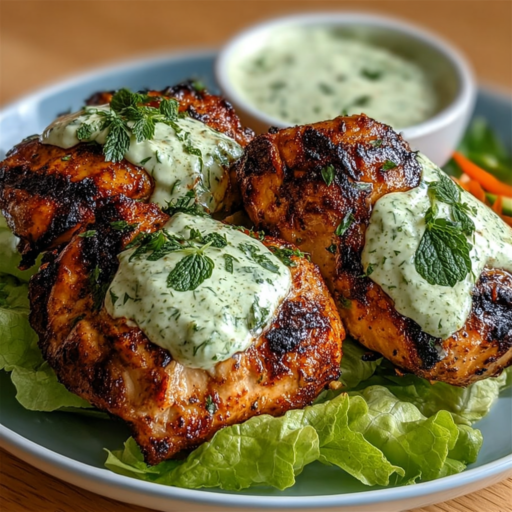 Cette recette de poulet grillé épicé accompagné d’une sauce crémeuse aux herbes est un parfait exemple de la manière dont quelques ingrédients simples peuvent donner naissance à un plat riche en goût, équilibré et raffiné. Le contraste entre les épices chaudes, la tendreté de la viande et la fraîcheur de la sauce crée une harmonie idéale pour un repas complet, sain et savoureux.