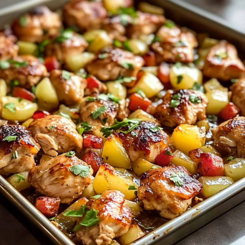 Le Poulet Hawaïen en Plaque de Cuisson est un plat rapide et délicieux qui combine la tendreté du poulet, l’acidité douce de l’ananas et la richesse de la sauce sucrée-salée. Ce plat est parfait pour un dîner en semaine où l’on recherche quelque chose de simple, mais plein de saveurs. La cuisson au four permet non seulement d’économiser du temps, mais aussi d’assurer que le poulet soit parfaitement cuit tout en conservant son moelleux. Si vous êtes fan de recettes exotiques avec une touche sucrée, ce plat est fait pour vous.