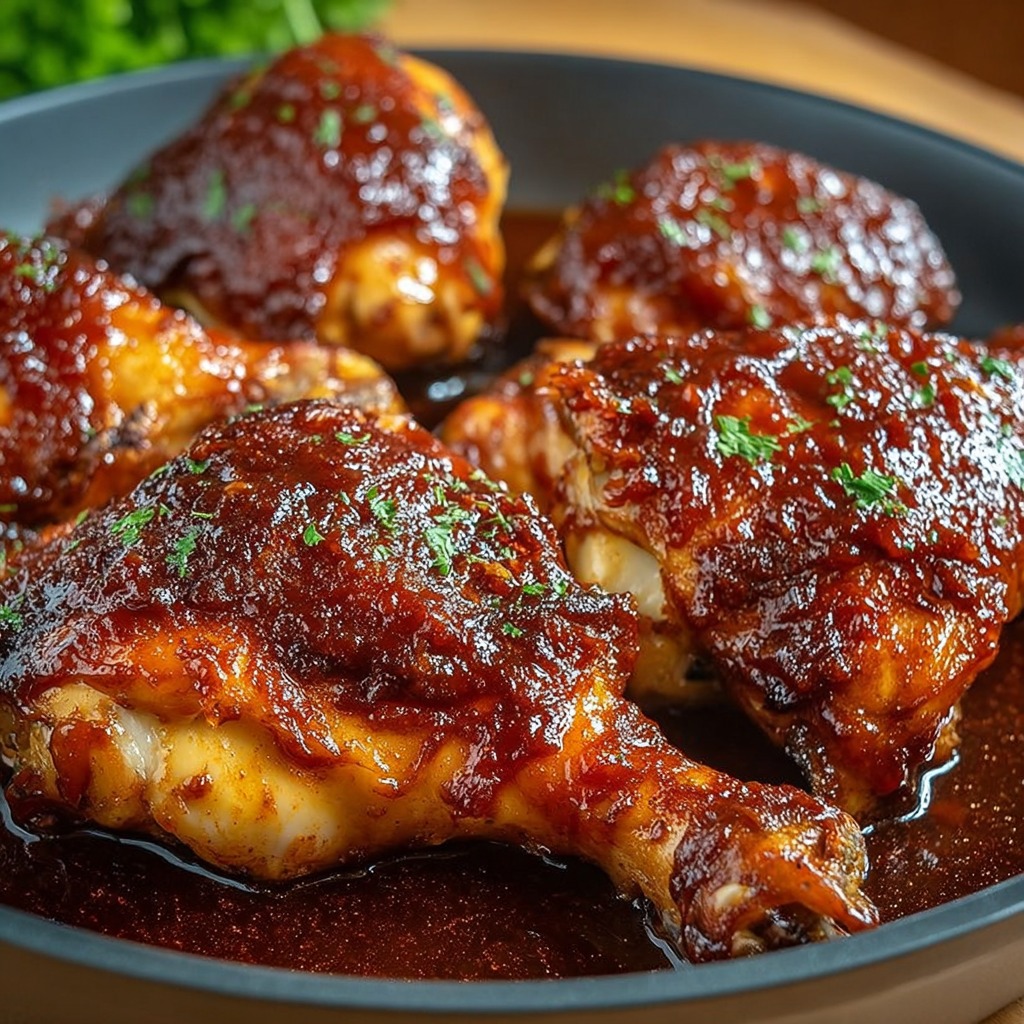 Le poulet laqué à la sauce barbecue maison est un plat à la fois simple et raffiné, qui séduit par sa texture tendre et sa sauce riche et parfumée. La combinaison du miel, du ketchup et des épices crée une explosion de saveurs à chaque bouchée. Facile à préparer et adaptable selon les goûts, ce plat apporte convivialité et gourmandise à chaque repas, idéal pour impressionner famille et invités avec un plat fa