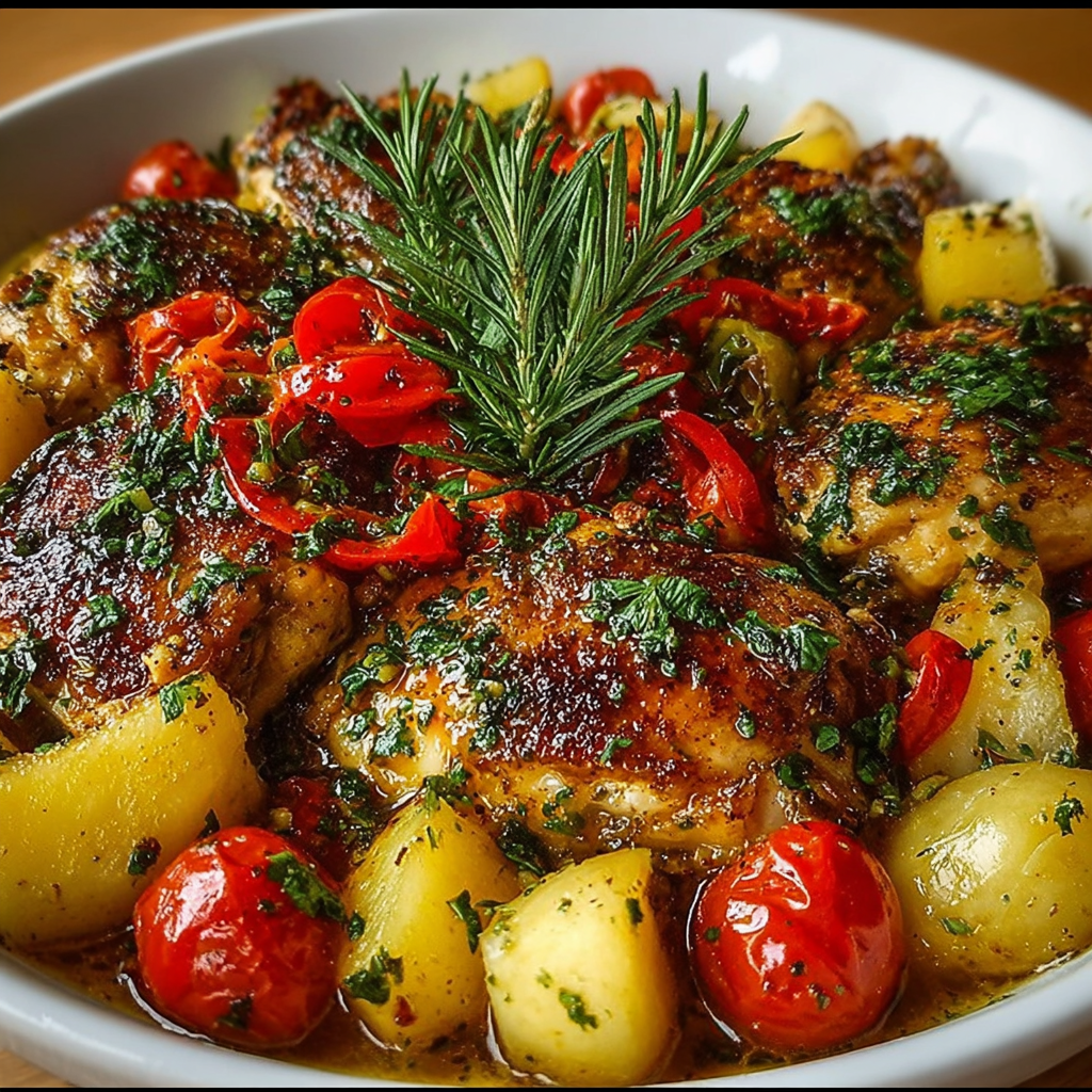 Le poulet méditerranéen aux légumes est un plat simple mais généreux, inspiré des cuisines du sud, où l’huile d’olive, les tomates, les poivrons et les herbes aromatiques apportent chaleur et authenticité. C’est une recette idéale pour un repas familial, équilibré, coloré et riche en saveurs.