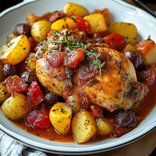 Le poulet mijoté aux poivrons et pommes de terre en sauce tomate est une recette simple, réconfortante et pleine de saveurs. Que ce soit pour un repas en semaine ou pour un dîner spécial, il satisfera tout le monde autour de la table. Facile à préparer, il vous permettra de savourer des ingrédients frais et un mélange de saveurs méditerranéennes, tout en apportant les bienfaits d’un plat équilibré.