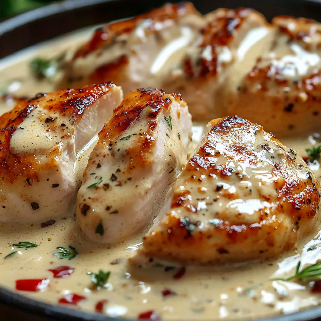 - Cuisson finale : Replacez les filets de poulet dans la poêle. Laissez mijoter à feu doux 8 à 10 minutes. La sauce doit être onctueuse et napper la cuillère.