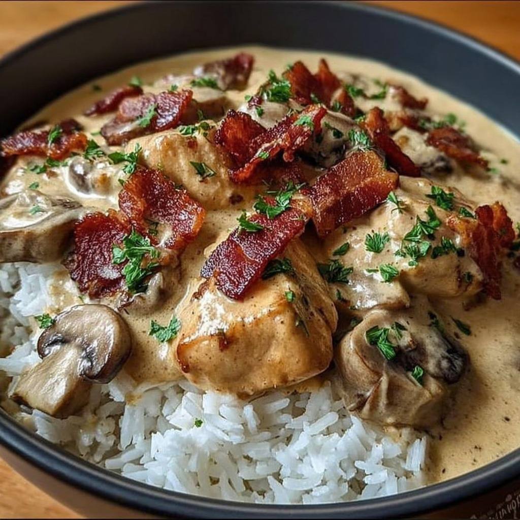 Le Stroganoff est un plat classique aux influences russes, réinterprété à travers les cultures avec une multitude de variantes. Si la version traditionnelle est souvent réalisée avec du bœuf, cette version au poulet n’en est pas moins savoureuse et se distingue par sa texture fondante, sa sauce riche et sa facilité d’exécution. Le mariage du bacon croustillant, du poulet doré, des champignons tendres et de la sauce crémeuse au paprika et à la moutarde de Dijon donne naissance à un plat équilibré, plein de profondeur. Accompagné de riz, il devient un repas complet et réconfortant, idéal pour une soirée en famille ou entre amis. Voici comment réussir ce plat à la maison étape par étape.
