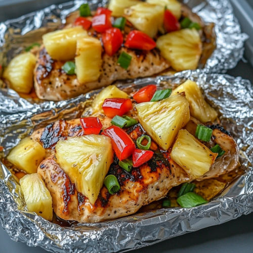 Le Poulet Teriyaki et Ananas en Papillote est une recette simple, saine et pleine de saveurs exotiques. Grâce à la cuisson vapeur dans la papillote, le poulet reste tendre et juteux, tout en absorbant le goût sucré-salé de la sauce teriyaki et de l’ananas.