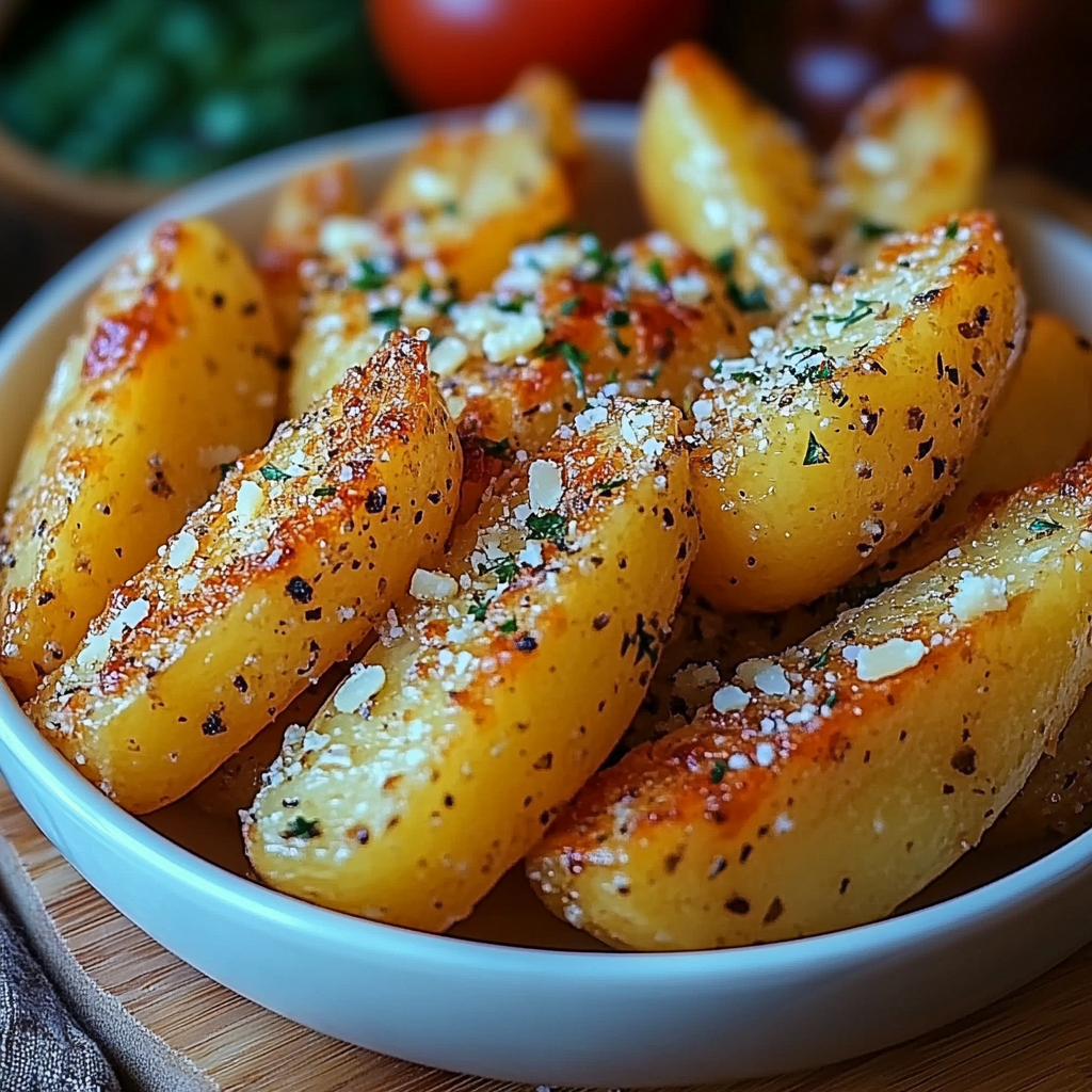 Quartiers de Pommes de Terre au Parmesan et à l’Ail Croustillants au Four