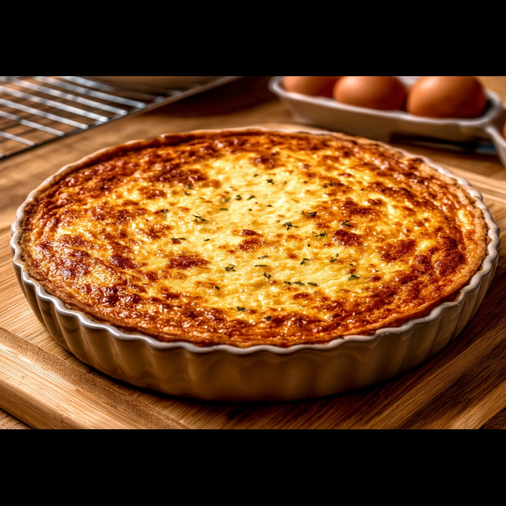La quiche doit être bien dorée sur le dessus et la garniture doit être prise.