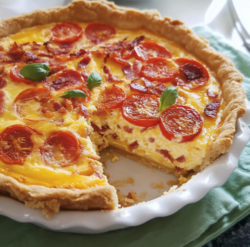 La quiche est un classique de la cuisine française qui séduit par sa simplicité et sa gourmandise. Cette version associe le fondant du fromage, la douceur des tomates et le goût fumé des lardons pour un résultat irrésistible. Facile à préparer, elle est idéale pour un repas familial, un pique-nique ou même un brunch.