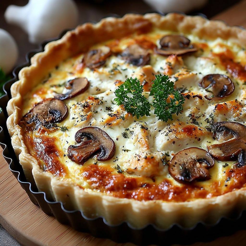 Quiche au Poulet, Champignons et Fromage