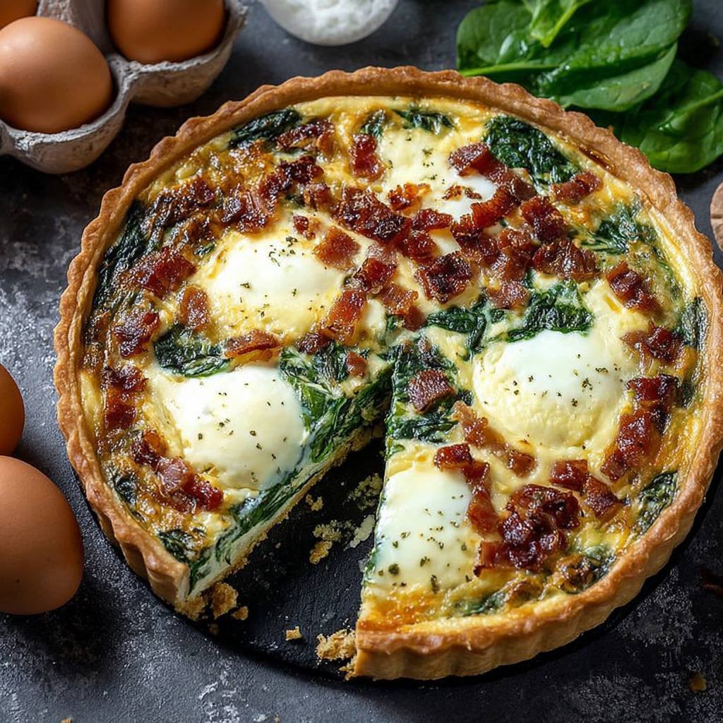 La quiche aux épinards, lardons et crème s’adapte aussi à différentes occasions. Servie chaude, elle devient un plat principal copieux, accompagné d’une salade verte croquante qui apporte de la fraîcheur et de la légèreté. Servie froide, elle se transforme en mets idéal pour un pique-nique ou un repas rapide, facile à transporter et à partager. Elle peut également être préparée à l’avance, ce qui en fait une solution pratique pour les repas en semaine ou les réceptions.