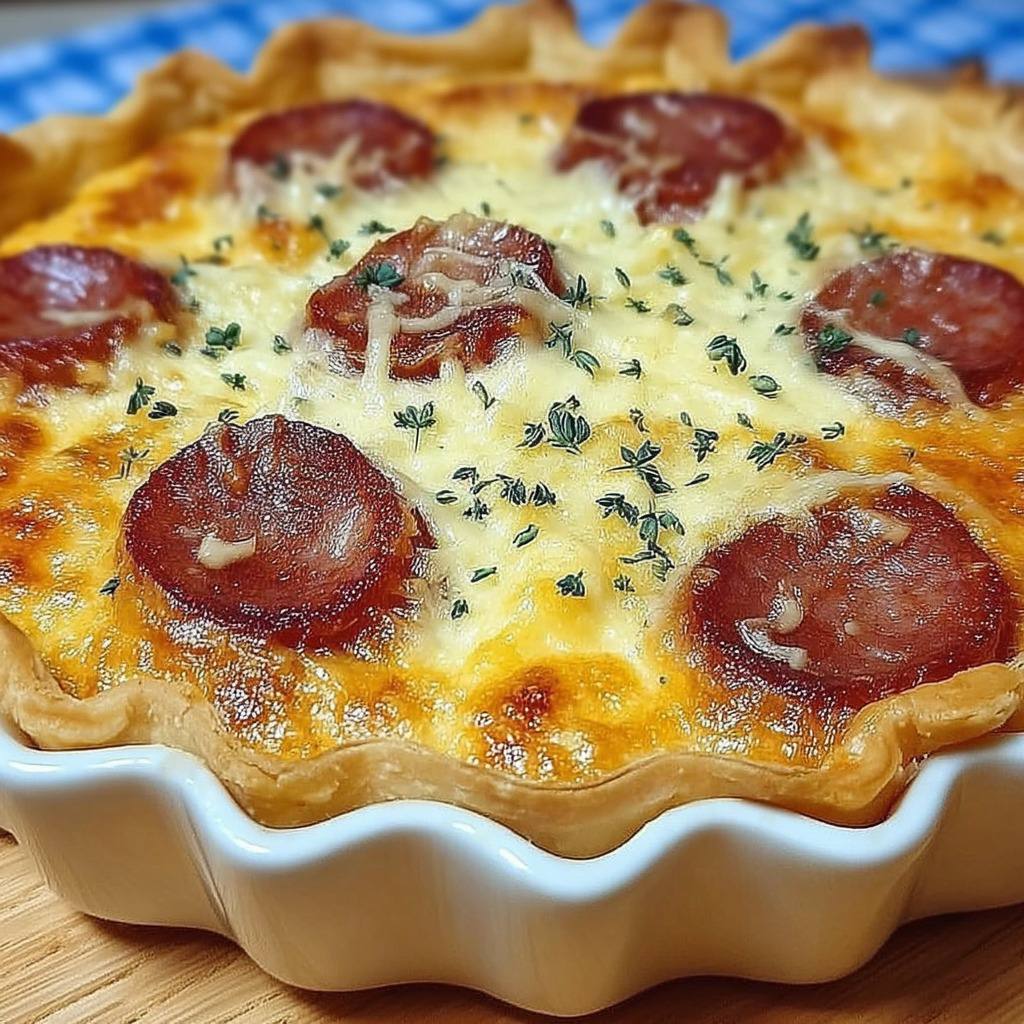 On peut ajouter des légumes comme des poivrons, des champignons, des courgettes ou des épinards pour enrichir la quiche et apporter de la couleur. Les saucisses peuvent être remplacées par du jambon coupé en dés, du bacon ou des knakis fumés selon les préférences. Pour une version plus crémeuse, ajouter un peu de fromage frais type ricotta ou mascarpone à la préparation.