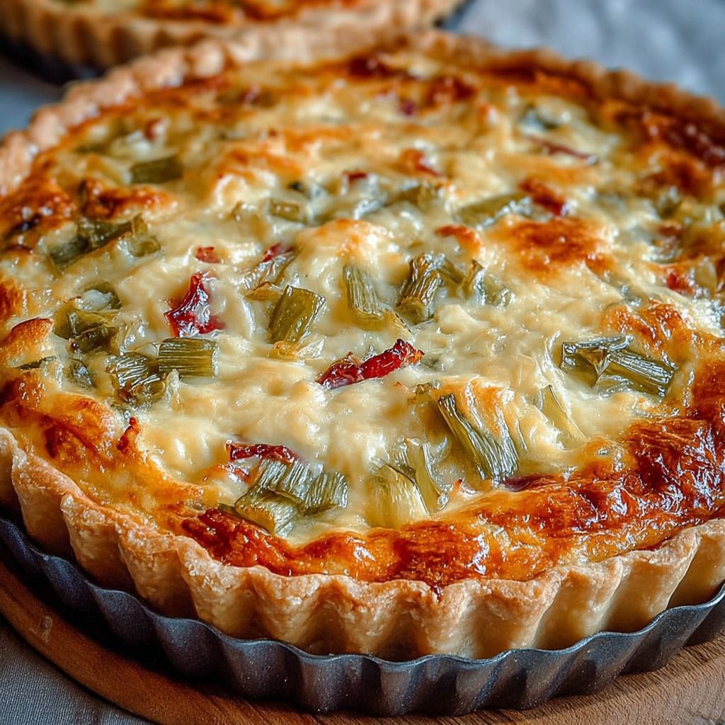 La quiche aux poireaux, fromage et tomates séchées offre un mélange parfait de douceur, fondant et parfum. Chaque bouchée combine le croquant de la pâte, le moelleux des poireaux et la richesse du fromage, pour un plat sav