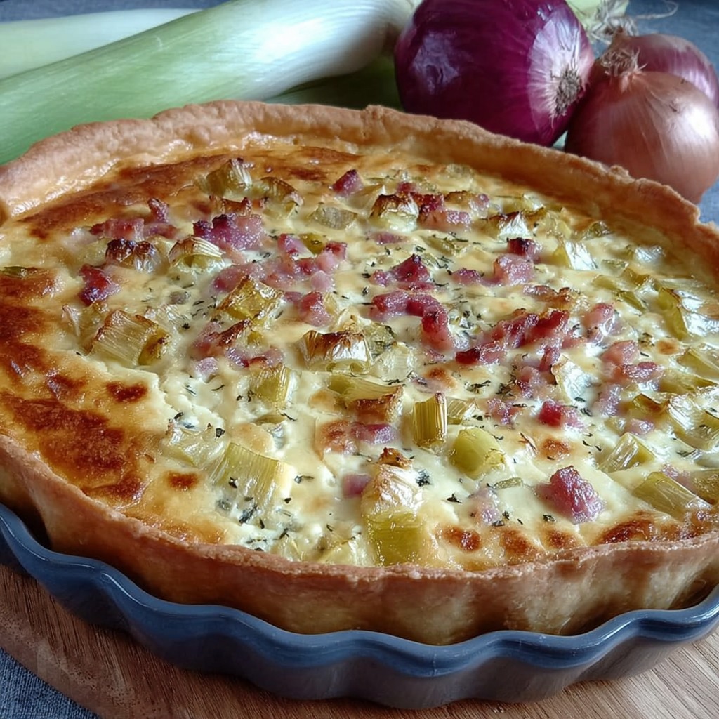 La quiche aux poireaux, lardons et crème est un grand classique de la cuisine française familiale. Elle incarne une cuisine simple, généreuse et conviviale, appréciée aussi bien lors des repas quotidiens que pour les déjeuners partagés. Ce plat salé repose sur l’équilibre entre la douceur végétale du poireau, la puissance aromatique des lardons fumés et l’onctuosité de l’appareil à base de crème et d’œufs. La quiche est un exemple parfait de la capacité de la cuisine française à sublimer des ingrédients simples grâce à une technique maîtrisée.